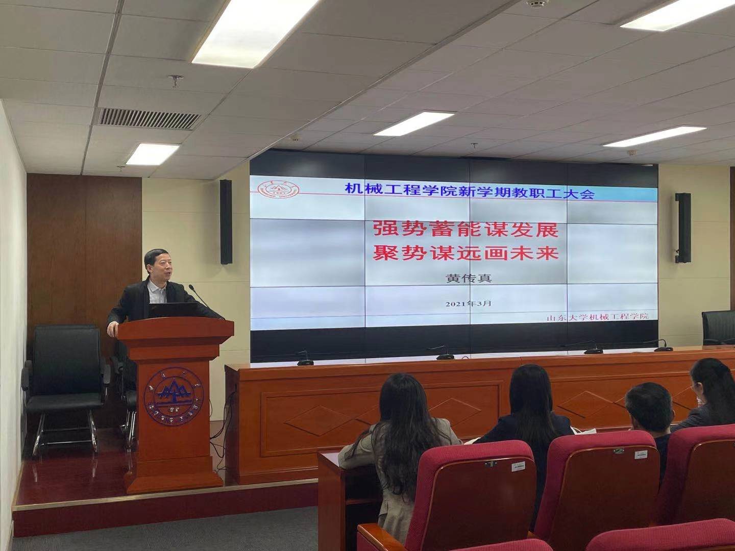 3月11日下午,mg冰球突破官方网站召开全院教职工大会,传达学校2021年春季学期工作会议精神,对学院新学期工作和党史学习教育进行了全面部署。院长黄传真、党委书记刘杰出席会议并讲话。