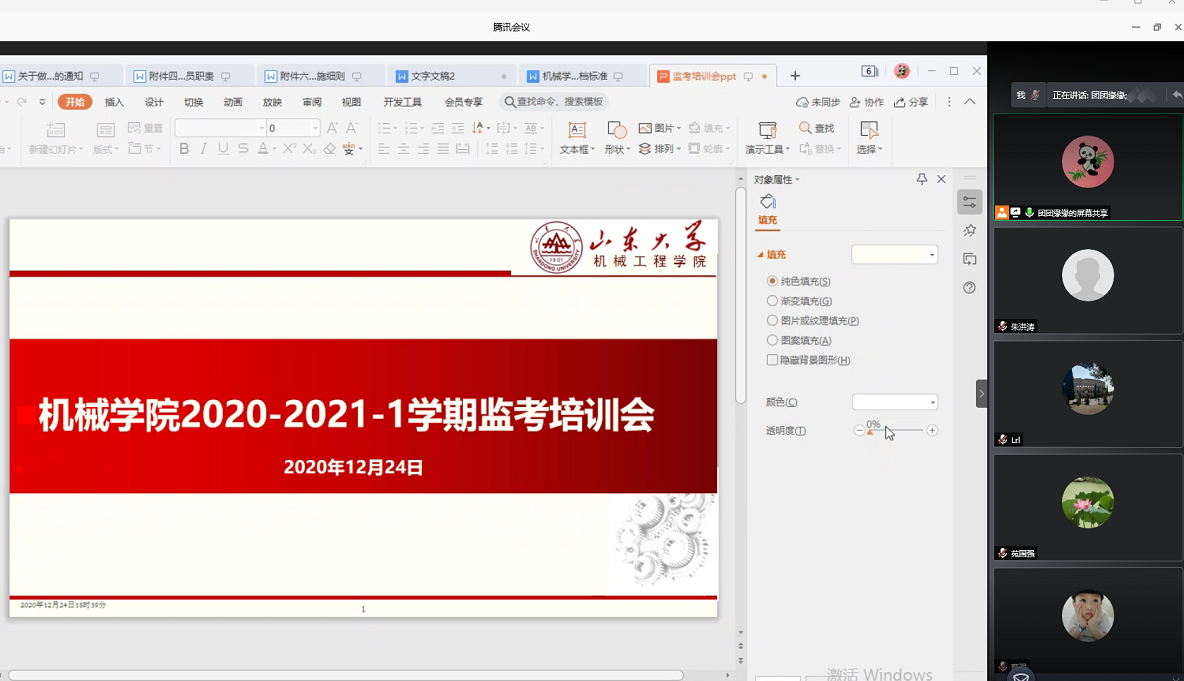 根据学校教学工作安排,本学期期末考试时间为2020年1月2日至1月10日。为保障疫情期间本科生考试工作正常有序进行, 12月24日晚,机械学院召开期末考试线上监考培训会,学院全体主考、监考教师参加会议。