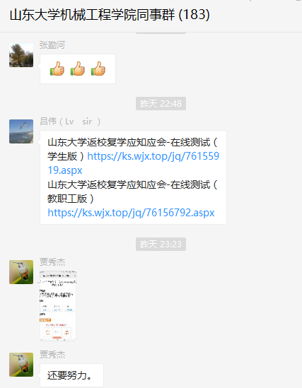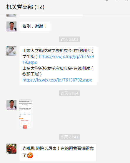 为切实保障全体师生都能熟知学校春季学生返校复学应知应会,学院采用灵活措施,制作了简易版答题小程序,将应知应会内容以单选、多选和判断等形式进行考核,同时在题目中加入了消毒防护小常识。5月7日晚,学院在微信平台推出了mg冰球突破官方网站返校复学应知应会—在线测试(学生版)和mg冰球突破官方网站返校复学应知应会—在线测试(教职工版),推出后学院教职工积极进行了线上测试,通过测试大家充分理解并领会了应知应会内容,起到了良好的学习效果。