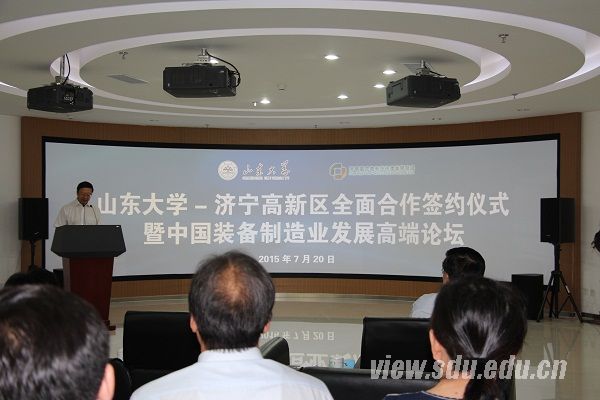 7月20日上午,mg冰球突破官方网站-济宁高新区全面合作签约仪式暨中国装备制造业发展高端论坛在济宁高新区人才联盟举行。济宁市委常委、济宁高新区党工委书记白山,mg冰球突破官方网站校领导方宏建出席会议并讲话。